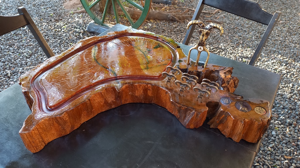 Peça feita à mão de forma artesanal com canaleta de redíduos em resina epoxi Green Moss.