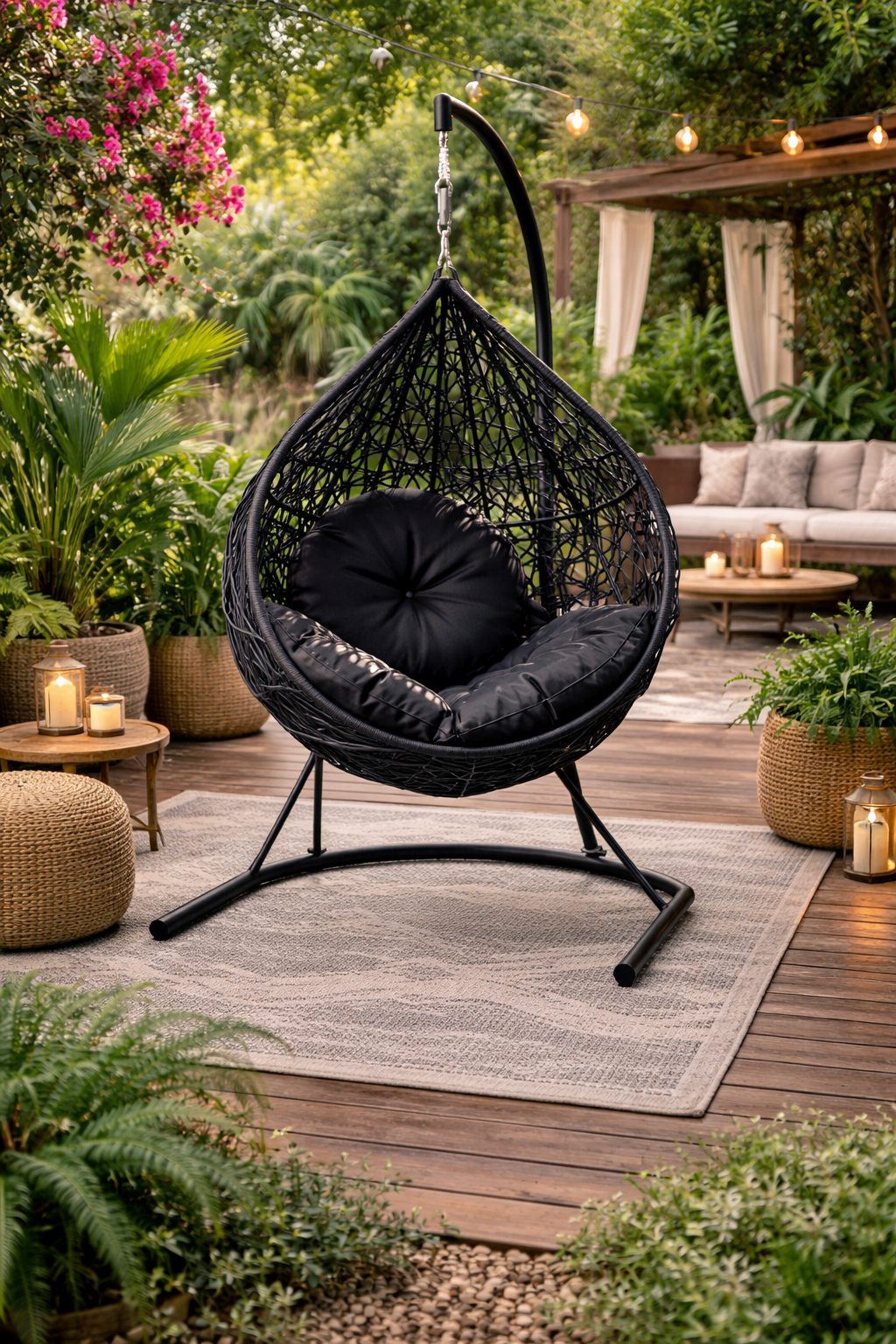 O Balanço Gota Corda une design moderno e conforto absoluto em um formato elegante de gota, tornando-se um destaque sofisticado para áreas externas. Seu tecimento artesanal em corda náutica de alta resistência é ideal para uso ao tempo, suportando sol, chuva e variações climáticas com excelente durabilidade.