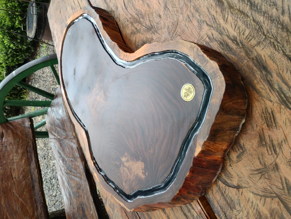 Peça feita à mão de forma artesanal com canaleta de redíduos em resina epoxi Green Moss.