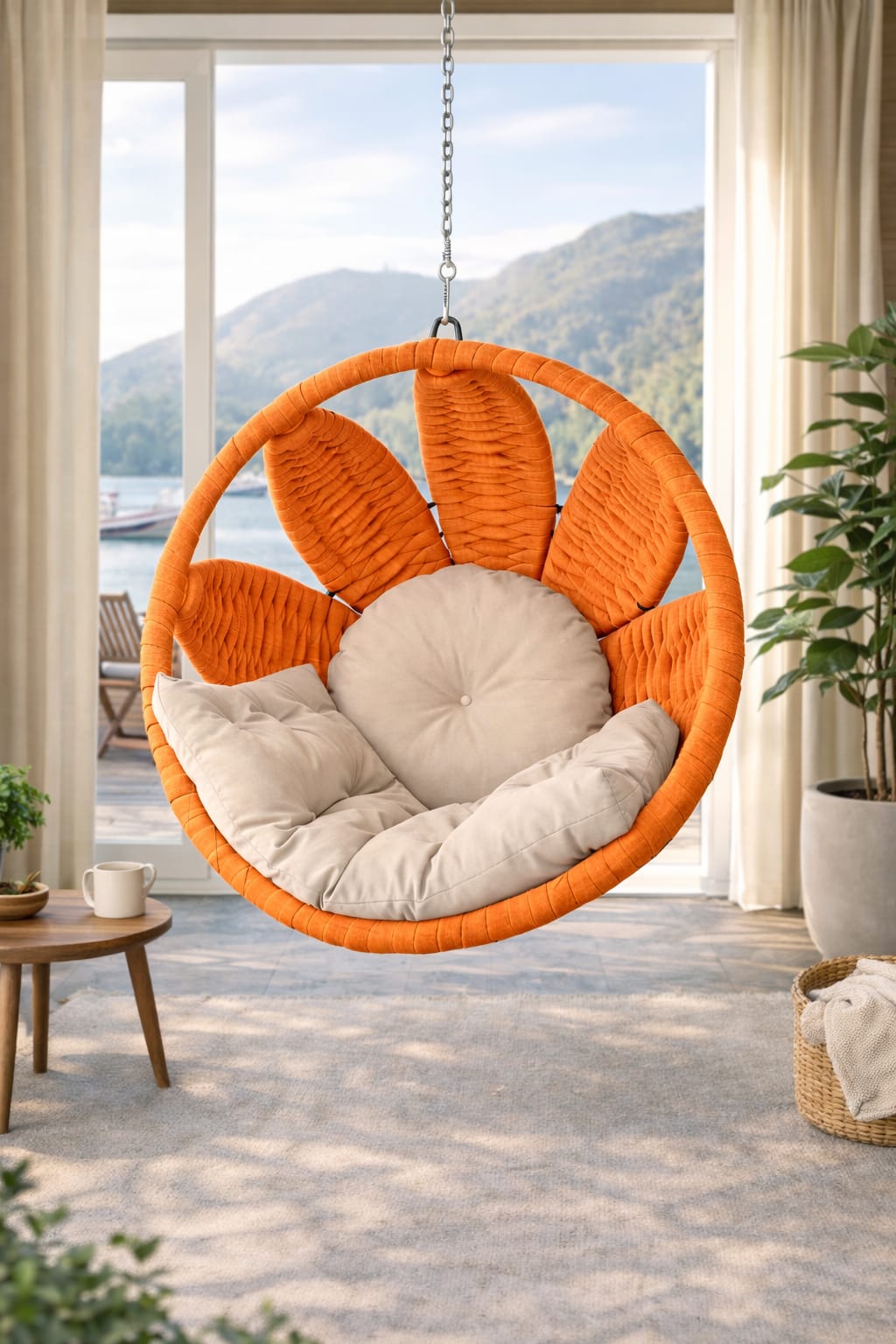O Balanço Folha Tricô se destaca pelo design orgânico inspirado na forma de uma folha, trazendo leveza visual, originalidade e sofisticação ao ambiente. Seu tecimento artesanal em tricô náutico, com desenho marcante e trama bem definida, cria um efeito escultural que valoriza a peça, tornando-a um verdadeiro destaque na decoração.