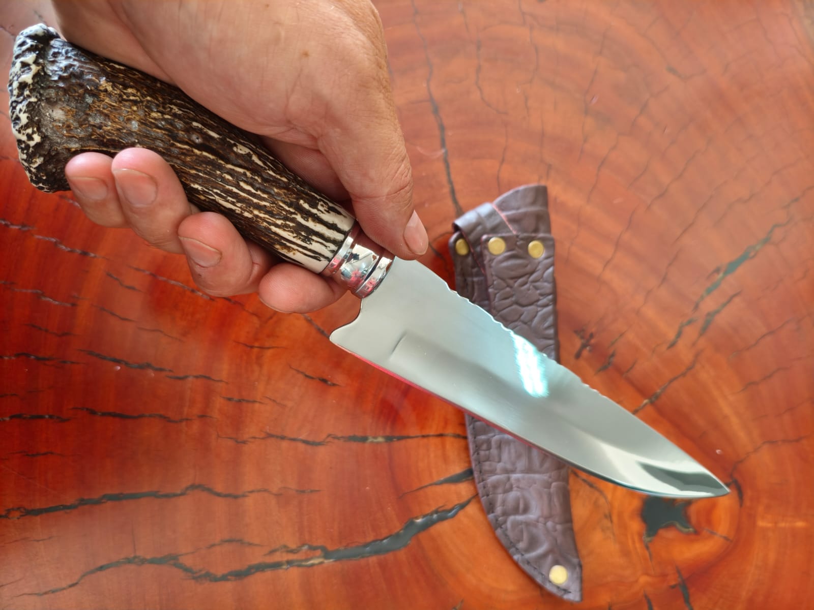 Faca Artesanal Inox 7" Cabo em Resina imitando Chifre de Cervo