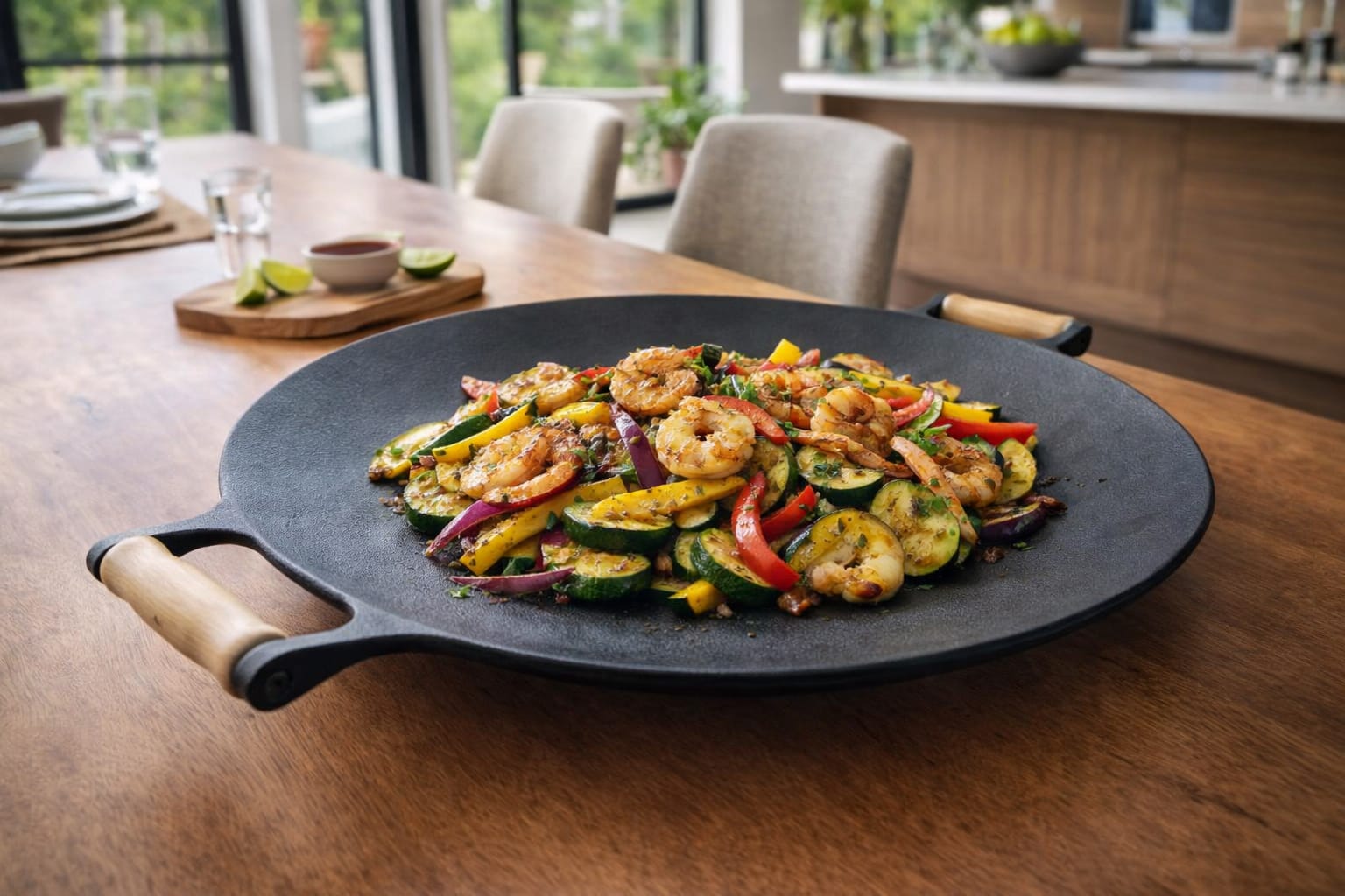 Com a chapa de ferro fundido, sua carne fica com aquele selado perfeito por fora e suculenta por dentro, trazendo um sabor incomparável que só o ferro fundido oferece.