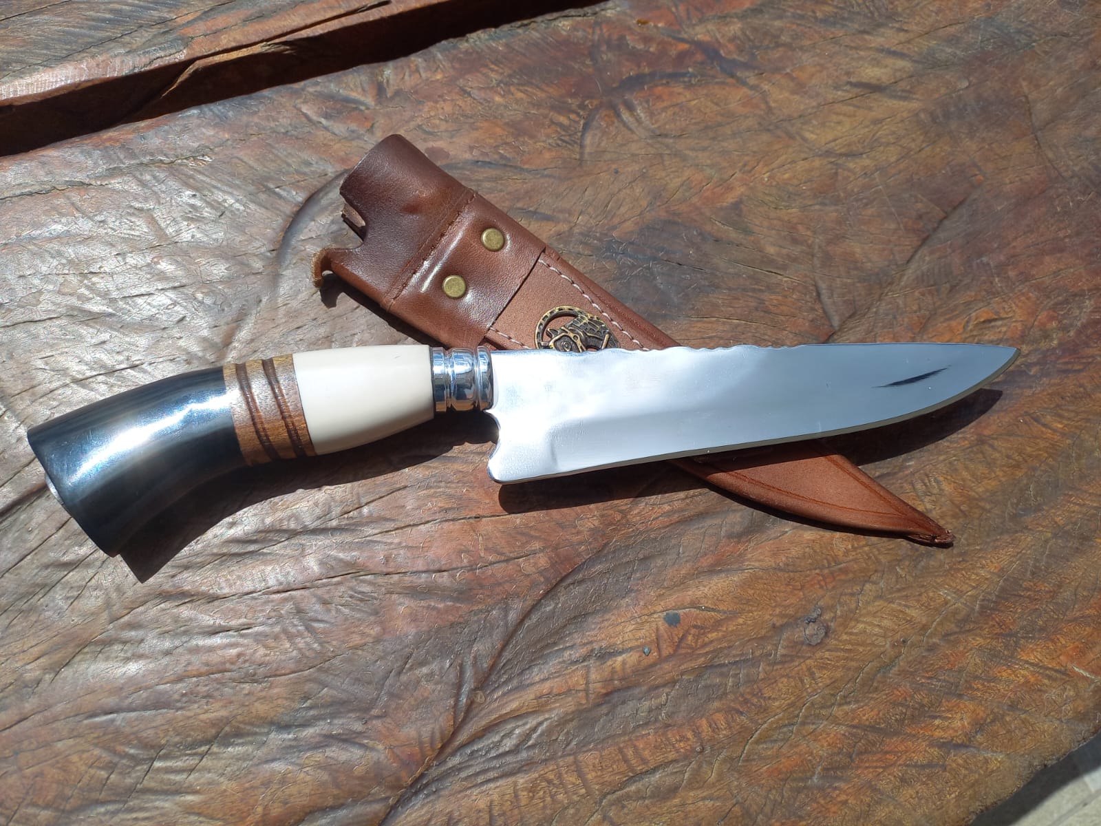 Faca Artesanal Inox 8" Cabo em madeira , osso e chifre