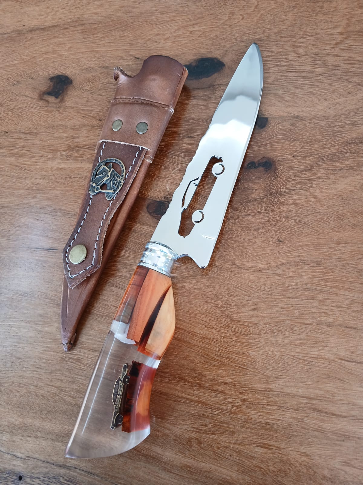 Eleve sua coleção ou suas aventuras ao próximo nível com esta incrível Faca de 7 polegadas, equipada com um cabo temático em opala, que une beleza e funcionalidade em um só item.