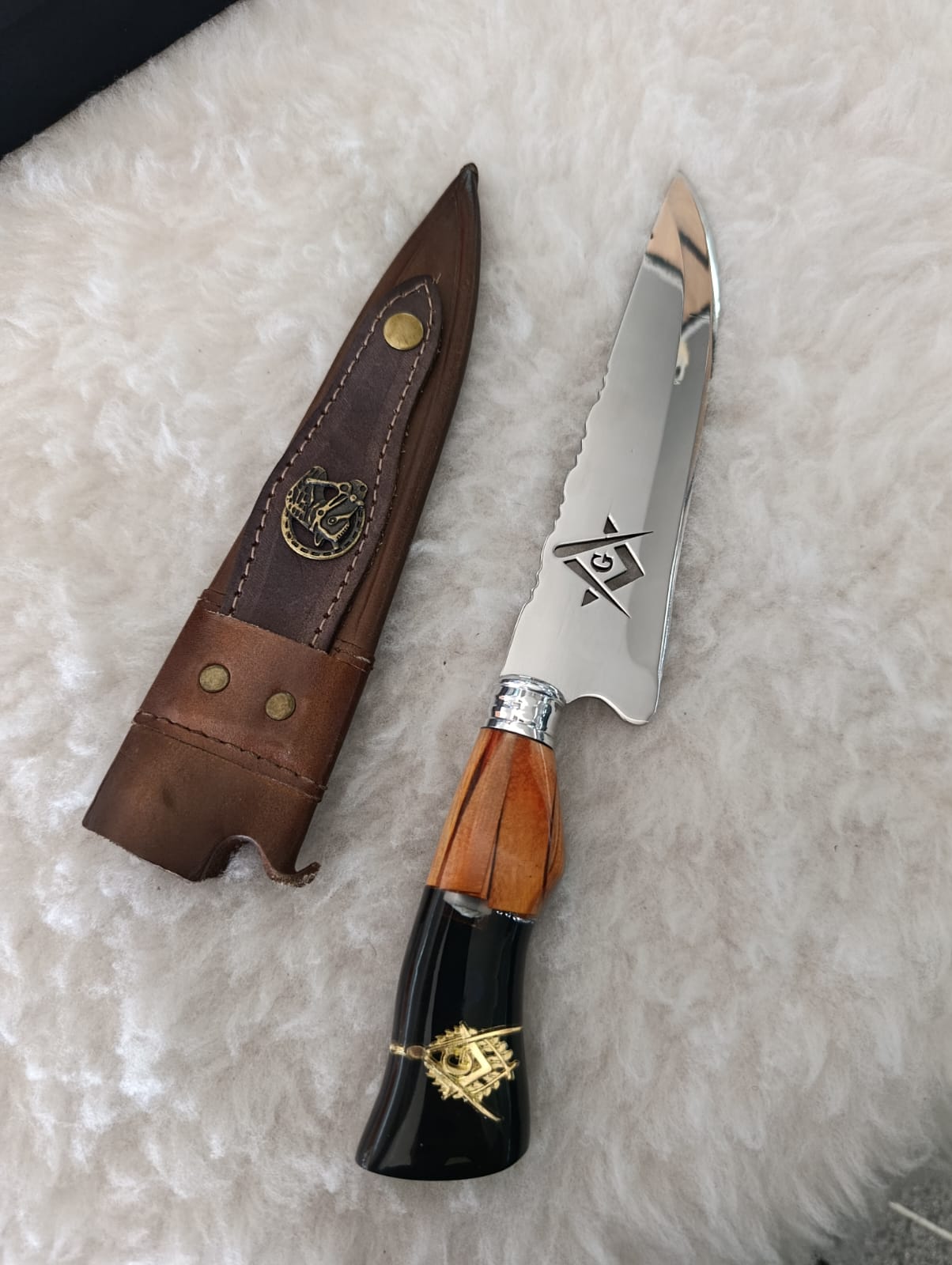 Sua lâmina em inox cirúrgico proporciona um corte eficiente e confiável, enquanto o cabo em resina com símbolo da Maçonaria traz um visual marcante e único.
