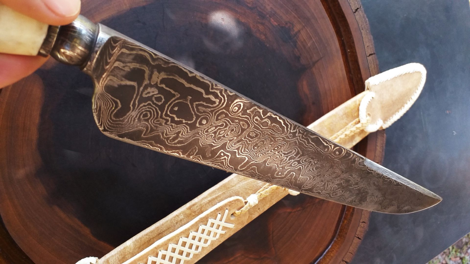 Faca gaúcha forjada em aço damasco, composto por aço carbono 5160 e aço níquel 15N20, construção integral, cabo em chifre de cervo. Lâmina com tratamento térmico (tempera) de excelente qualidade, propiciando para a faca maior resistência mecânica e durabilidade de fio. Faca adequada para o uso diário, podendo atender atividades com ampla funcionalidade, no churrasco do final de semana, na carneada, no uso do campo e da cozinha.