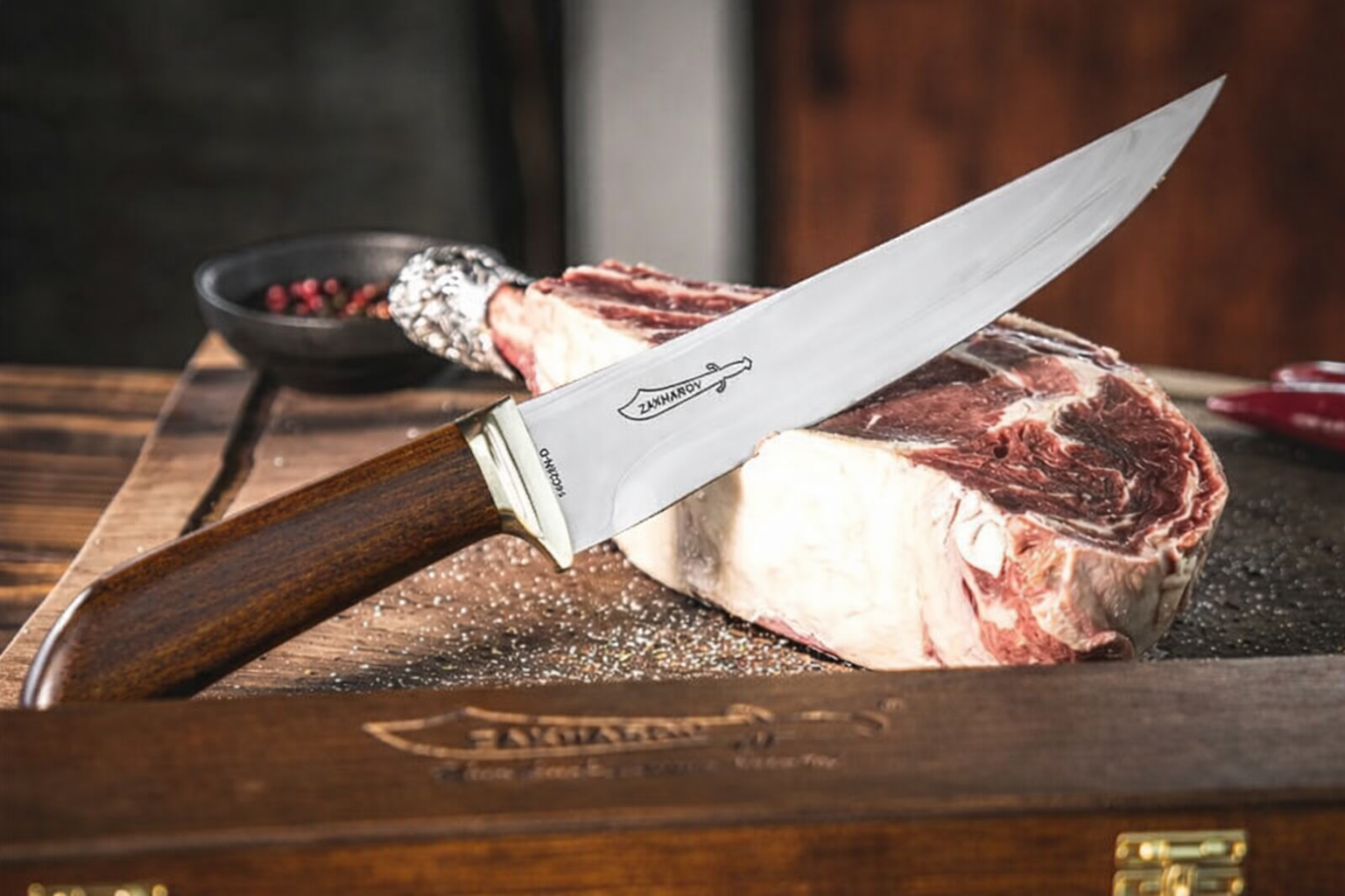 Campeã de Vendas! Com lâmina de 8 polegadas super afiada, a faca Picanheira Zakharov é feita com um dos aços mais apropriados que se possa encontrar no mercado internacional para cutelaria, garantindo alta durabilidade do fio e tenacidade. A guarda é feita em latão (peça dourada existente entre o cabo e a lâmina) e o cabo em madeira de lei certificada.
