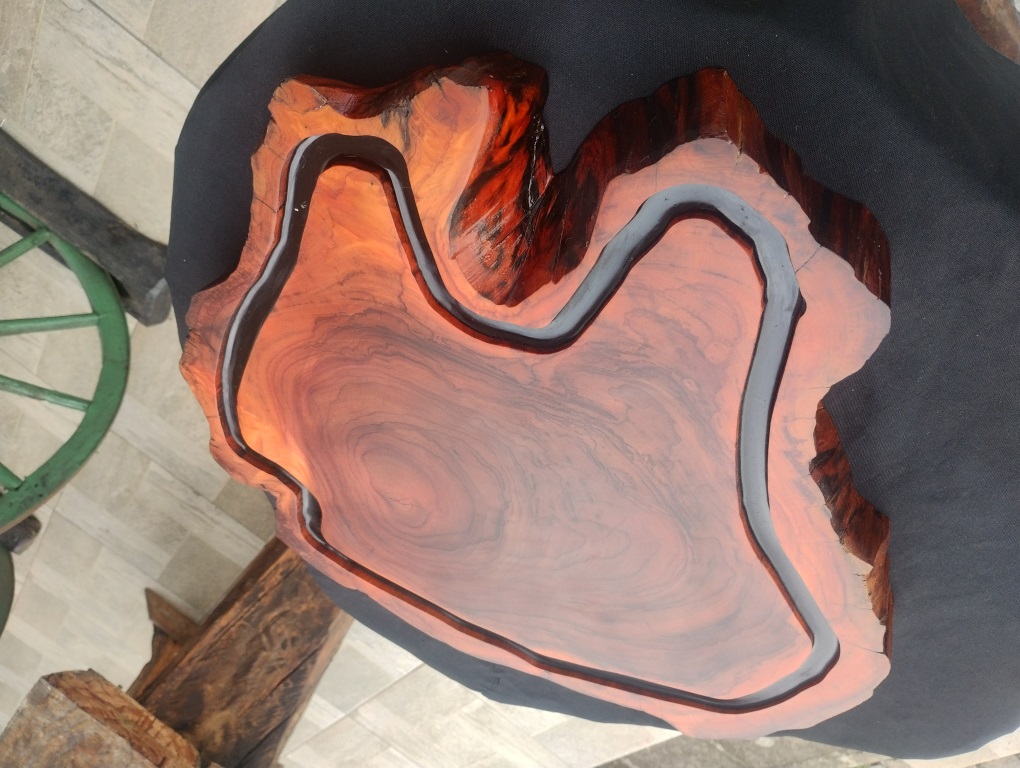 Tábua única em madeira nobre de aproveitamento (Peroba rosa). Recebe tratamento especial com produtos atóxicos.