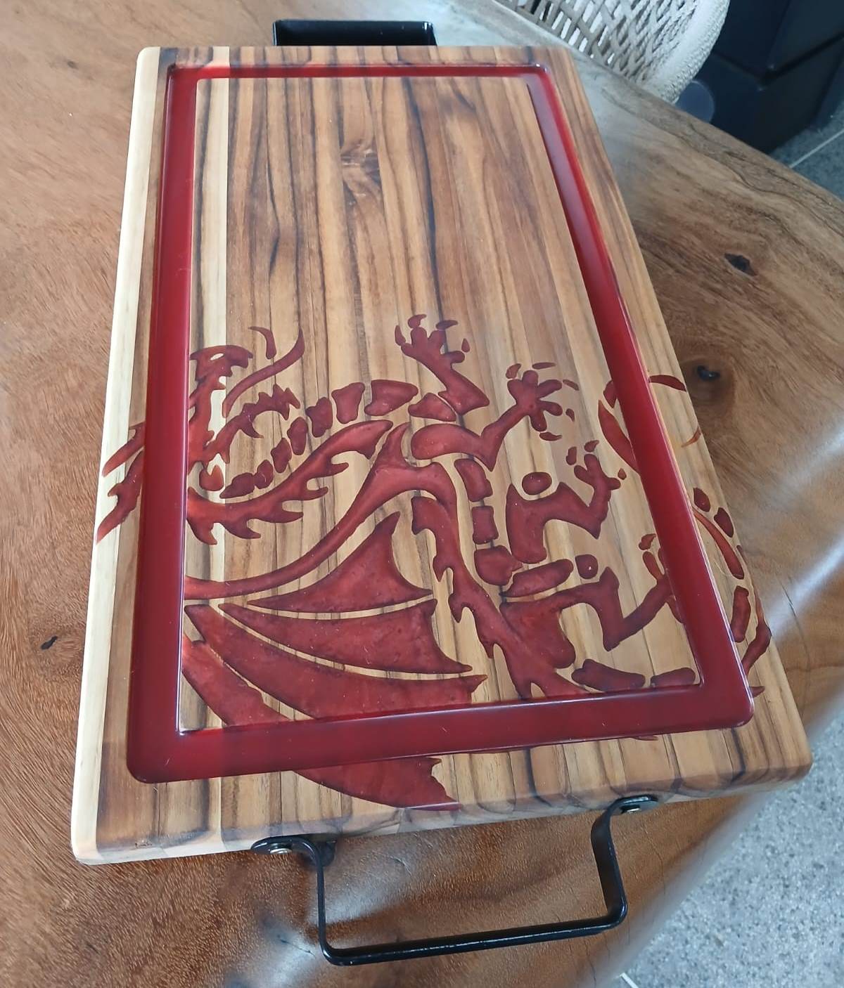 TABUA DE CORTE PARA CARNE EM MADEIRA TECA COM RESINA