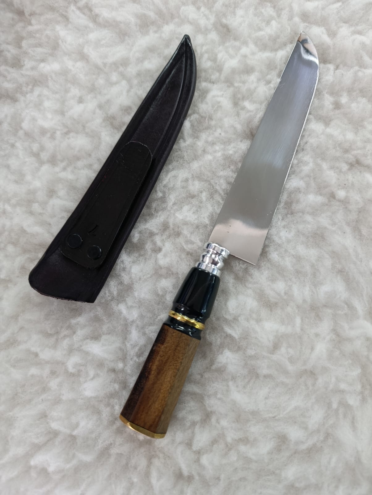 Produzida com aço inox cirúrgico, ela oferece alta resistência à corrosão, ótimo desempenho no corte e um visual marcante, perfeita para uso em churrasco, cozinha, camping, pesca, coleção ou presente especial.
