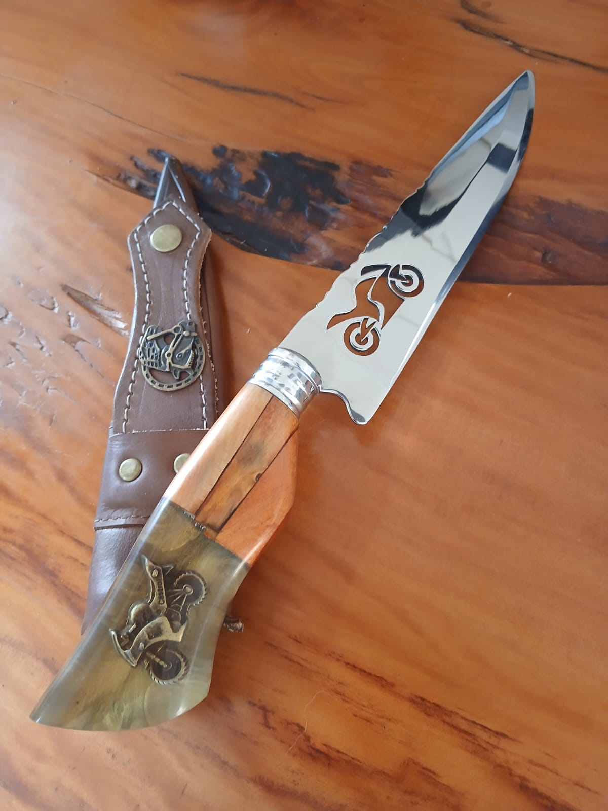 O diferencial está no cabo temático inspirado em motos e velocidade, proporcionando um visual moderno e arrojado que impressiona qualquer entusiasta. Seja para aventura, acampamento ou coleção, esta faca une funcionalidade e design exclusivo.