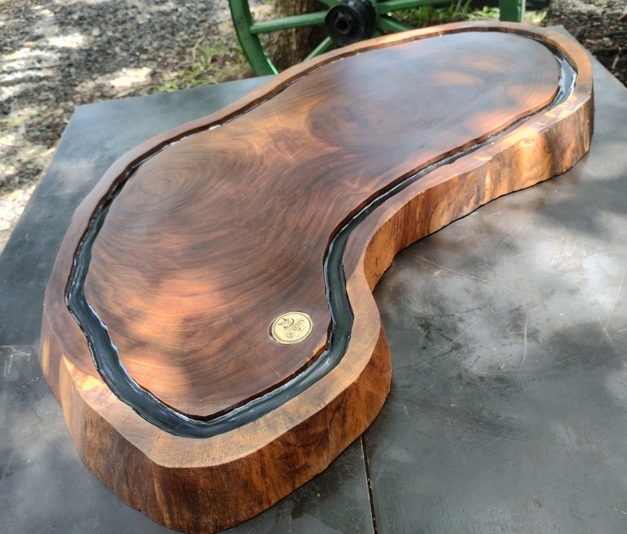 Peça feita à mão de forma artesanal com canaleta de redíduos em resina epoxi Green Moss.