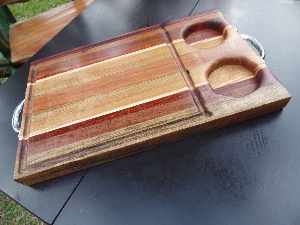 Tábua de Corte com petisqueira, em "End Grain" feita com madeiras nobres