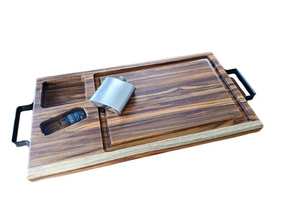 O design inteligente conta com área ampla para cortes, além de compartimento exclusivo para acomodar cantil de inox para whisky e mini garrafa como item decorativo, trazendo praticidade e sofisticação para seus momentos de lazer.