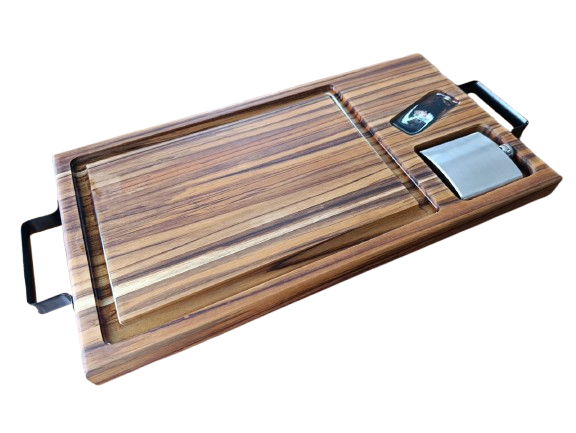 Tábua BBQ Madeira Teca - Acompanha cantil para Whisky